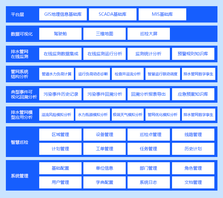 过这些模块的协同运作,实现了对城市排水与防涝设施的全方位监测、调度与管